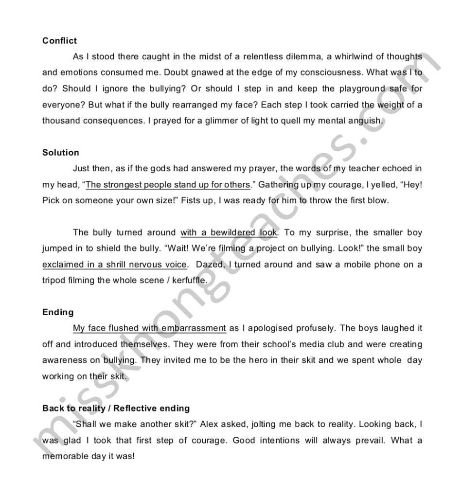 One of the important composition themes, Upper Primary students should master is about being an upstander. Once you have the know-how of describing a bullying incident, and you can show the internal struggle / conflict the protagonist or main character goes through to be an upstander, then it is easy to fit your ideas and content into many given themes. Another possible theme that the sample composition can fit is An Unexpected Outcome or A Surprise. But you do need to change some aspects of the story to fit the theme. Can you think of other themes that this story would suit?